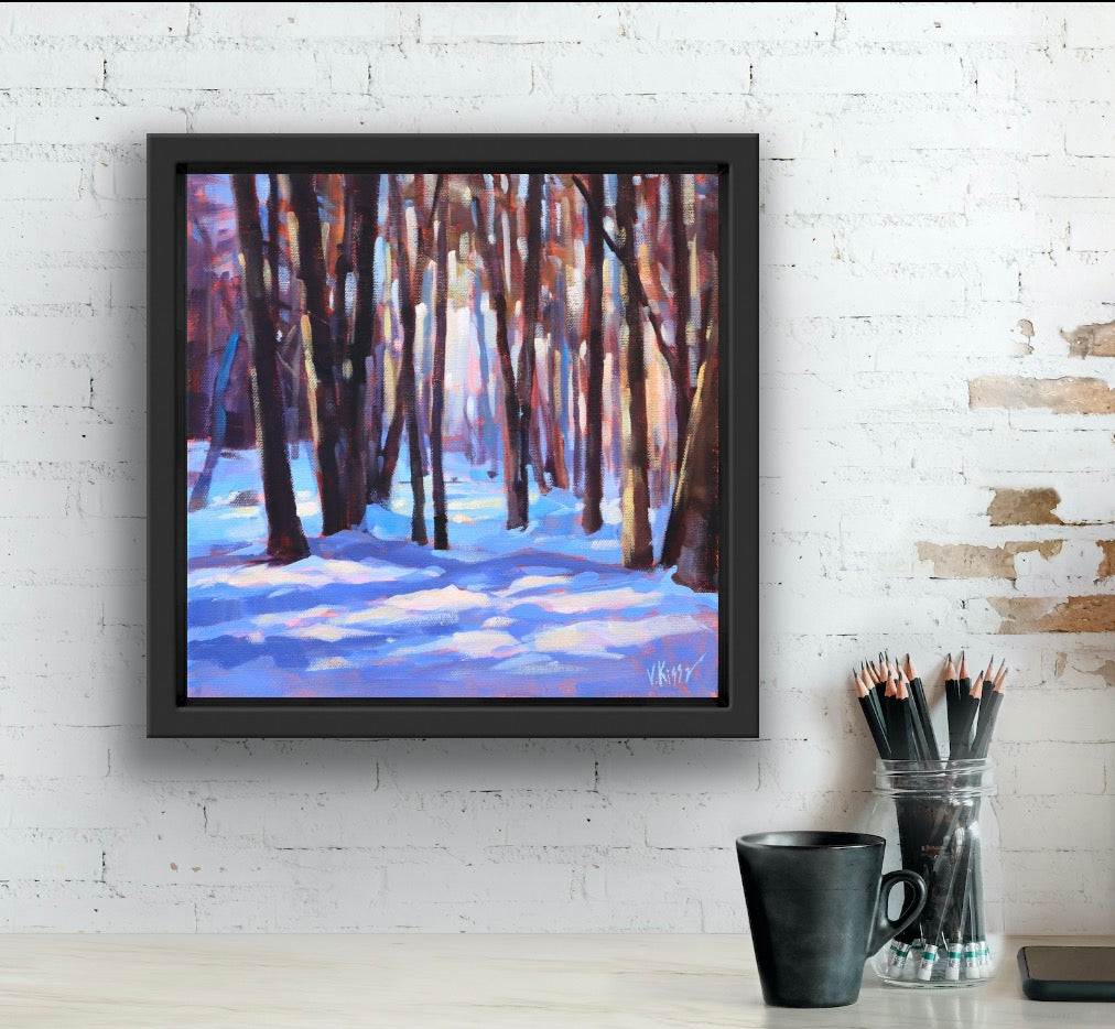 "Shadows of Winter Dream" Acrylic on canvas 8"x8" FRAMED