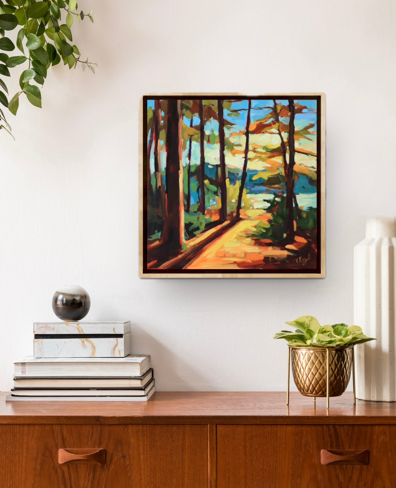"Golden Passage Through the Woods" Acrylic on canvas 24"x24" FRAMED