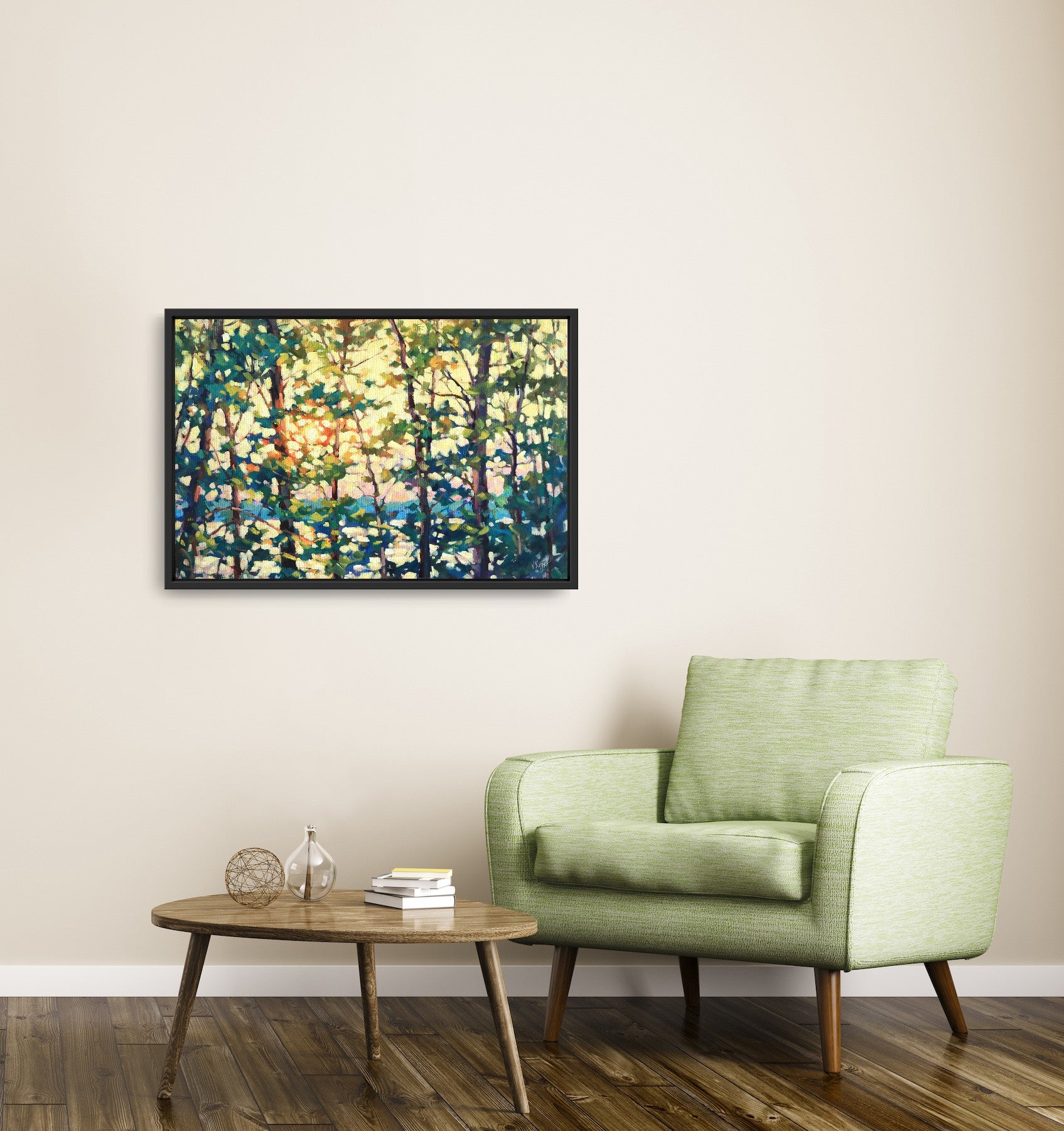 Two coats of protective satin varnish applied to protect the painting from UV damage and dust.